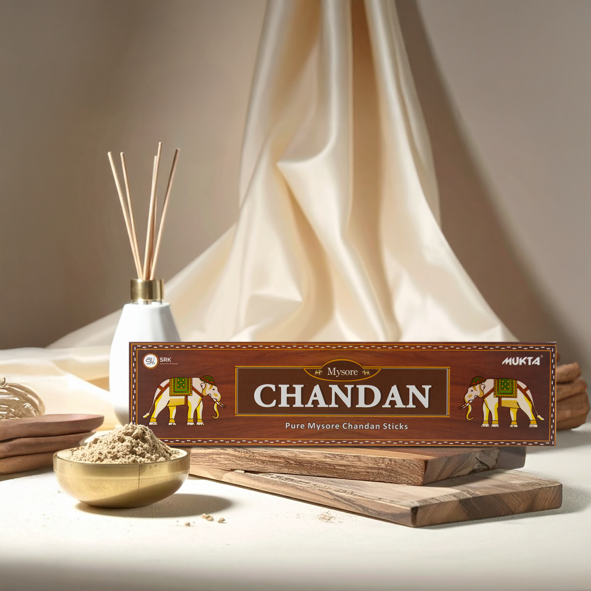 Indulge in the timeless aroma of Mysore Chandan incense sticks. Known for their rich sandalwood fragrance, these sticks bring peace, purity, and a sacred ambience.